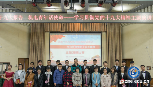 为了深入学习贯彻党的十九大精神,推动习近平新时代中国特色社会主义思想深入人心。1月6日,我院在图书馆多功能厅开展了“研读十九大,机电青年话使命”主题演讲比赛。此次比赛由学院团委主办,习近平新时代中国特色社会主义思想青年学习会、口才与交际协会、益文书社、悦声播音主持社、笃行社联合承办。广西演艺职业学院知行学习会的师生代表到场学习观摩。