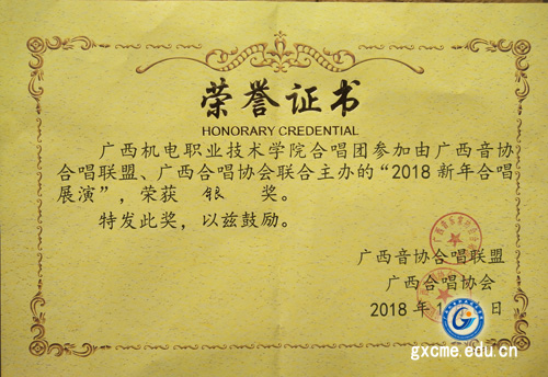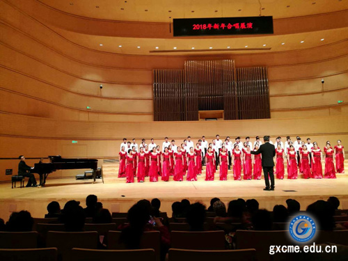 1月6日,由广西音协合唱联盟、广西合唱协会联合举办的“2018年新年合唱展演”在新落成的广西文化艺术中心音乐厅盛大开幕。中国合唱协会副理事长、秘书长李小祥,中国音乐家协会理事、广西音乐家协会主席黄朝瑞,广西音乐家协会名誉主席、著名指挥家张效东,中国合唱协会常务理事、广西合唱协会主席、国家一级指挥覃广周,广西音协合唱联盟副主席、国家一级指挥梁尚出席并担任专家评委。我院大学生艺术团合唱队在展演活动中表现优异,斩获银奖。