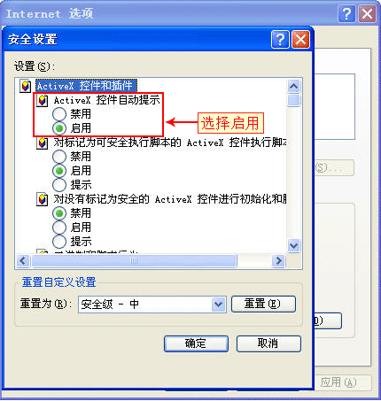 进入如图3,请在列表的“ActiveX 控件和插件”部分的“自动提示 ActiveX 控件”下,单击“启用”